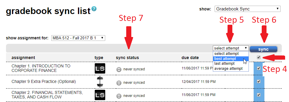 Step 5: Click the dropdown menu to the left of the sync button and select best attempt.