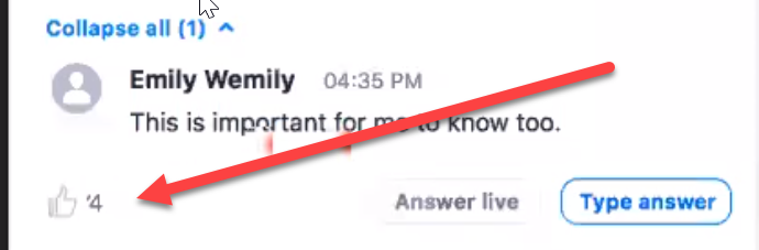 You might see the questions move a little bit because zoom will prioritize the most popular questions to the top of the list.