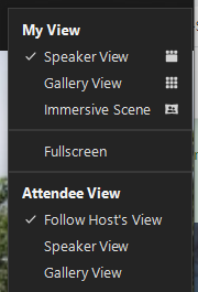 - Recommend: Attendee View - Follow Host's View or Speaker View.